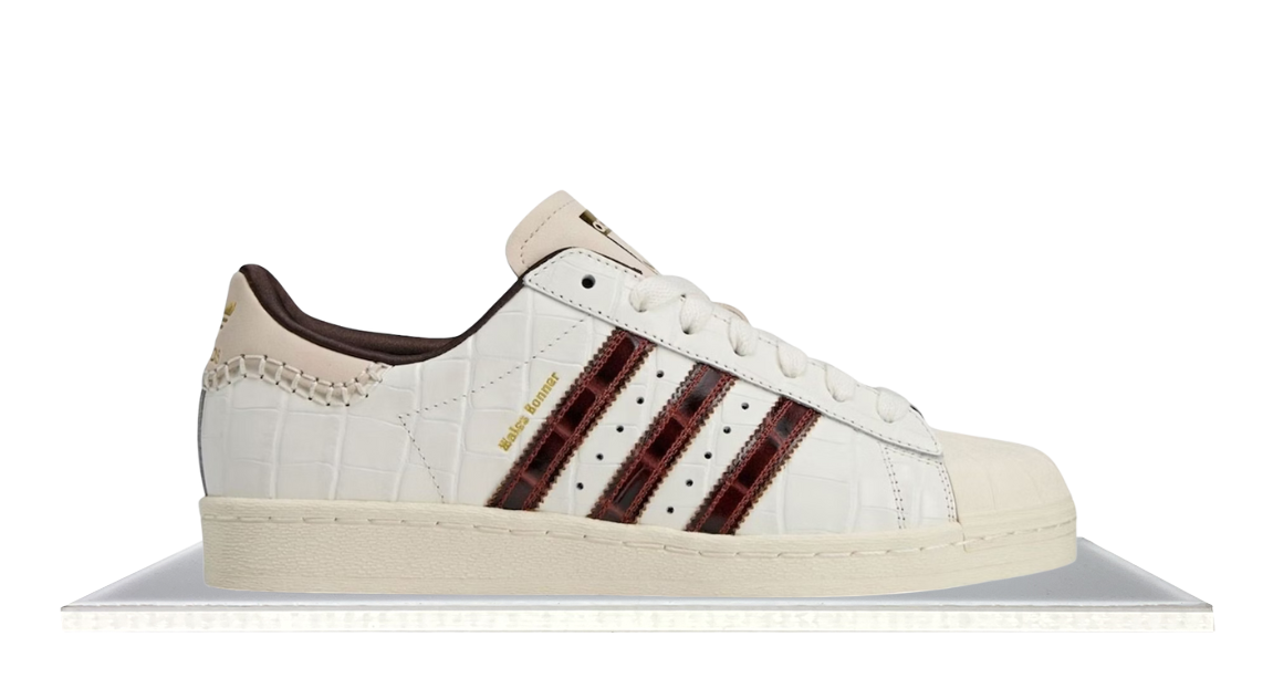 Adidas Superstar Wales Bonner White Brown Croc reimagines the classic shell-toe with Grace Wales Bonner’s refined design language. The crocodile-embossed leather upper is paired with rich brown accents and gold details for a luxurious finish. Cream tones on the sole and toe add a vintage touch.