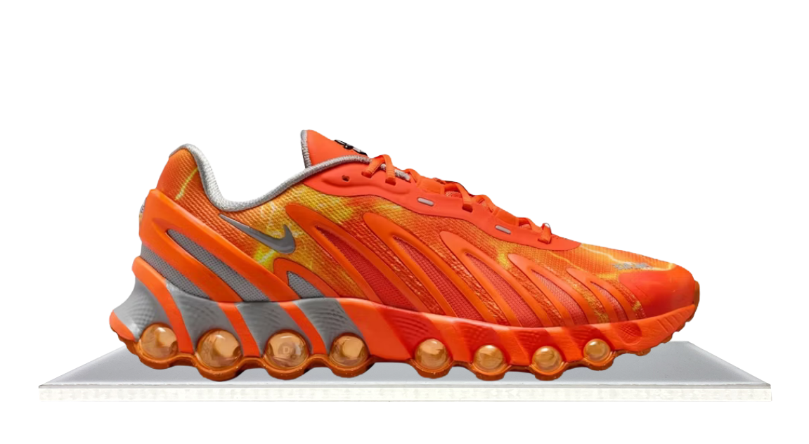 The Air Max Dn8 Palace Safety Orange makes a bold statement with its vibrant colorway. Bright orange tones energize the futuristic silhouette, blending Palace’s street-driven attitude with a standout Air Max look.