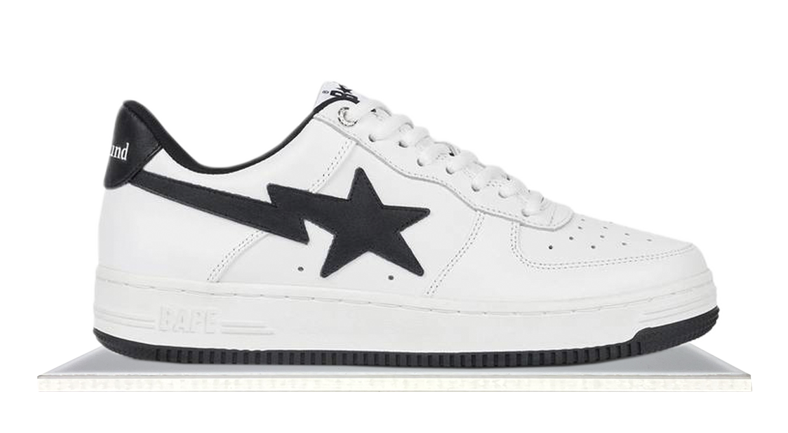 The Bape sta, presented to you by JJJJound in an all white color with a navy Star-swoosh along the side.