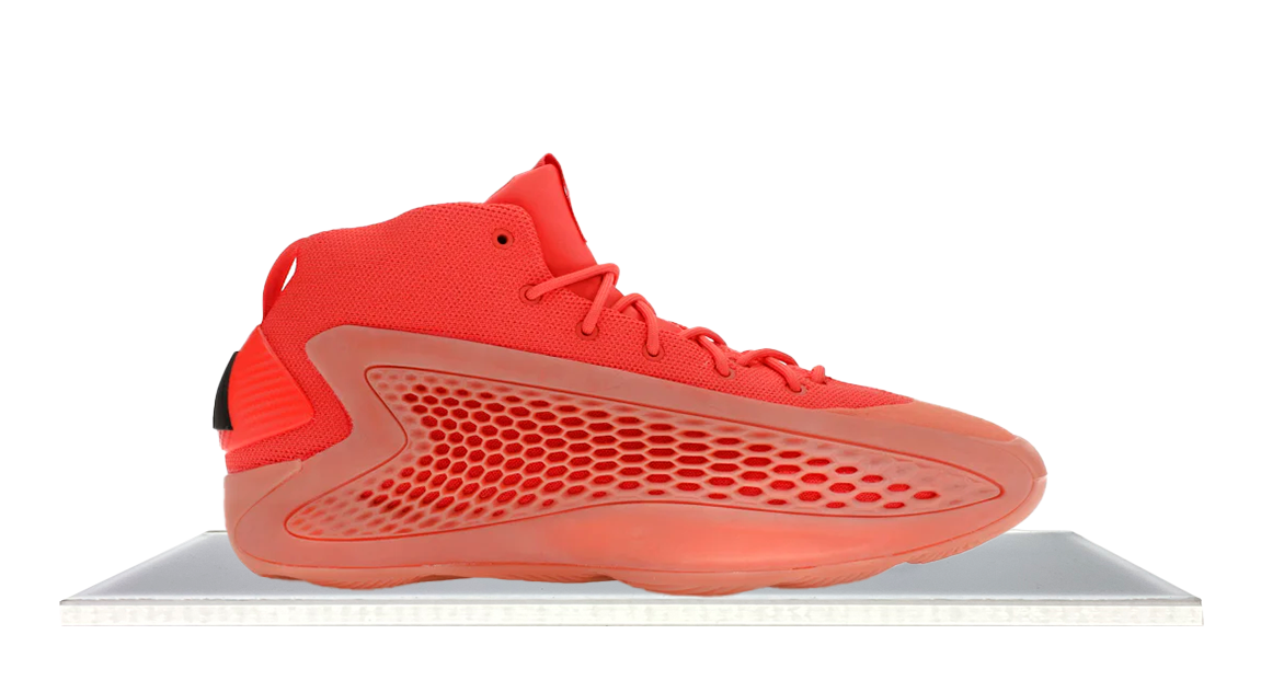 The adidas AE 1 'Georgia Red Clay' boasts a coral-hued mesh upper with tonal TPU support wings for enhanced breathability. Featuring Edwards' logo on the tongue tag and adidas' embossed three-stripes on the molded heel counter, it offers Boost cushioning in the heel and Lightstrike foam in the forefoot for superior comfort and support.