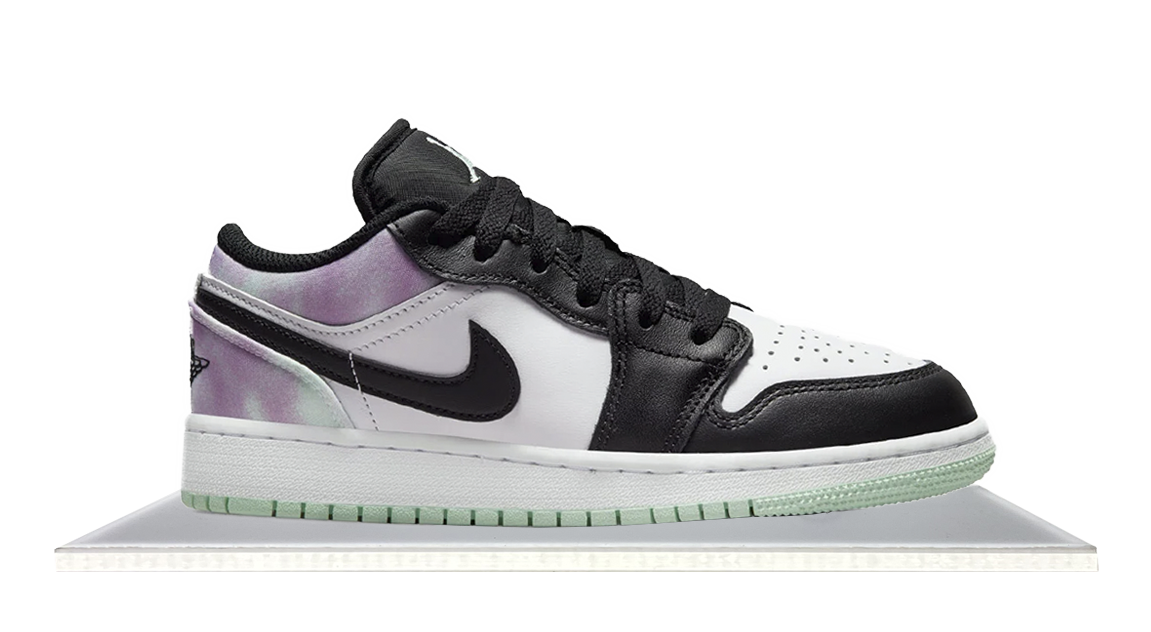 Air Jordan 1 Low is back in an easter, pastel colorway. The shoe features a tie-dye graphic in pastel colors on the heel, a sole in pastel and overlays, and tongue and laces in black.
