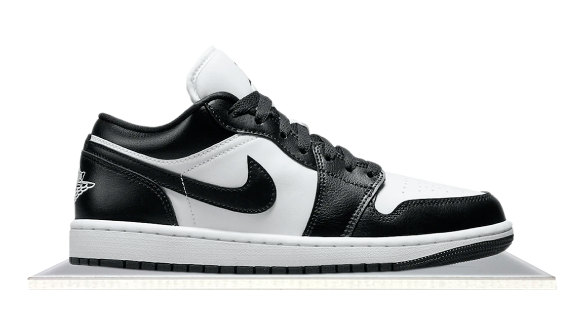 The Air Jordan 1 Low Panda (2023) is finally here. It is featuring a white leather base, with black overlays in leather as well. Air Jordan branding is found on both the tongue and heel tab.