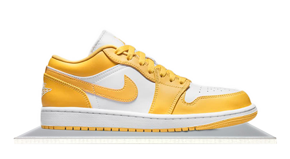 This iteration of the Air Jordan 1 Low comes in timeless colors, in both white and a bright shade of yellow giving the sneaker the name “Pollen”. Additional details include branding on the tongue tag and the Wings logo on the heel.