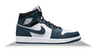 The Air Jordan 1 Mid Armory Navy is a classic sneaker with a stylish twist. It boasts a white leather upper with striking dark navy overlays and Swooshes, while black leather collars provide a subtle contrast. The Jordan Wings logo and Jumpman label on the tongue add to its iconic design.