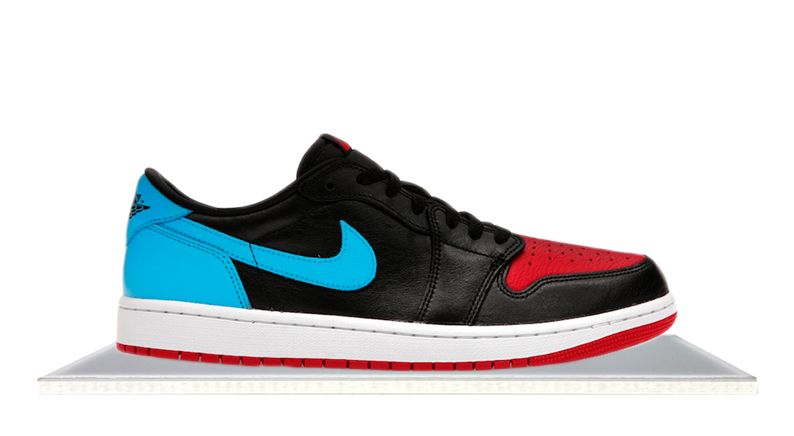 The Air Jordan 1 Low OG NC to Chi is a tribute to Michael Jordan's roots, blending UNC blue with Chicago Bulls black and red. Crafted from leather, this iconic sneaker embodies Jordan's college and professional basketball journey in one stylish design.