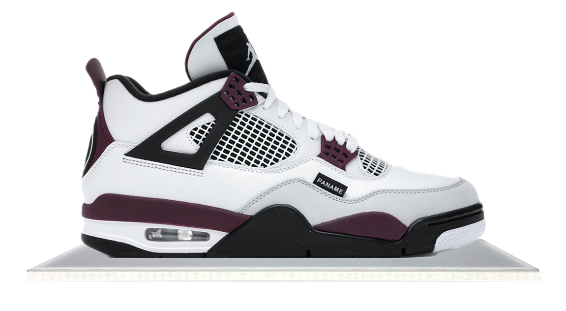 The Jordan brand and the football club Paris Saint-Germain have a partnership and with that partnership comes collaborative takes on some of the most iconic J’s. This time it's the Air Jordan 4 which gets a makeover with a white upper, and shades of Bordeaux, grey and black highlighting details throughout the sneaker. Additional details include a PSG logo on the heel tab and a "PANAME" tag on the lateral side of the sneaker.