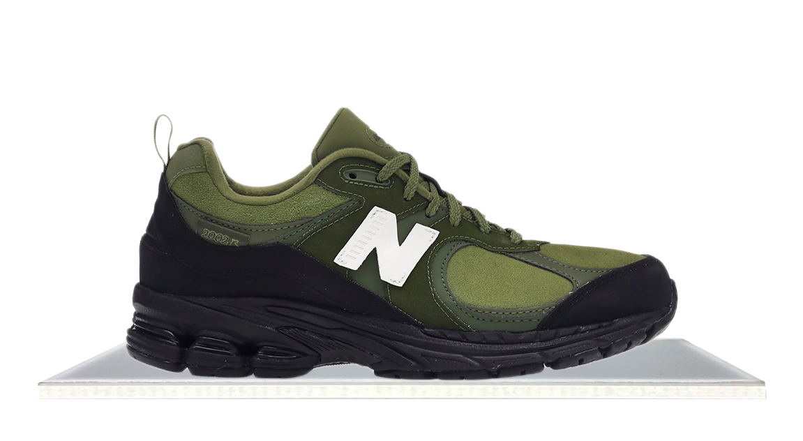 The New Balance 2002R x The Basement ‘Moss Green’ collaboration boasts rich green hues on a modernized silhouette. Crafted with water-resistant suede and textured rubber, it features black accents for contrast. The Basement’s ‘9 Bar’ logo and BSMT branding adorn the shoe, while a black ABZORB midsole ensures lightweight cushioning and comfort.