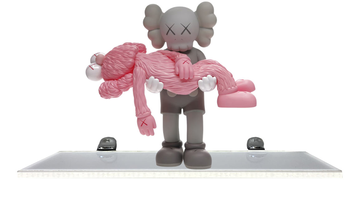 The KAWS Gone Pink features a Companion figure holding what appears to be a lifeless BFF figure in its arms.