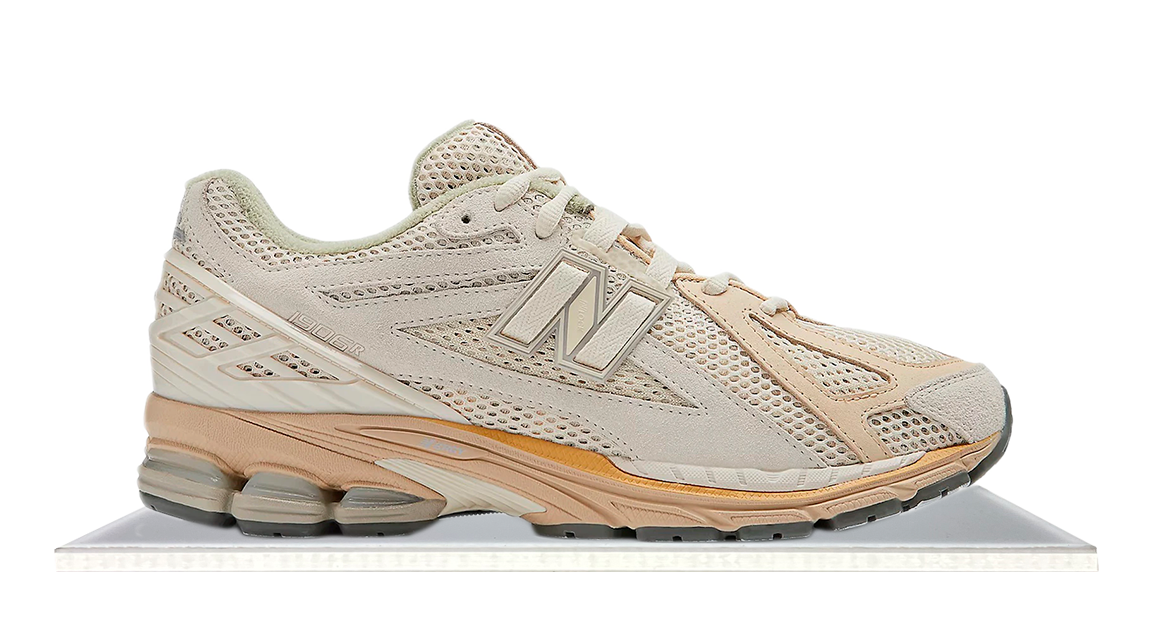 New Balance 1906R AURALEE Bone White – a fusion of AURALEE's minimalistic sophistication and 2000s running style. Premium materials, neutral tones, and meticulous craftsmanship elevate this tech-forward design. The open knit mesh upper, leather, and nubuck overlays, along with the plush terry cloth collar lining, offer a luxurious, textural experience.