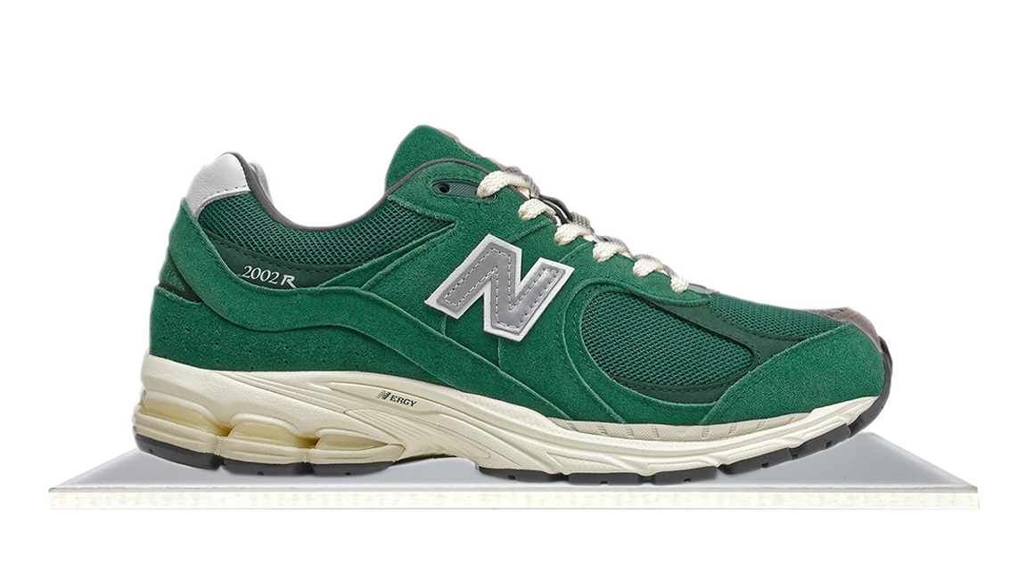 New Balance 2002R Nightwatch Green is part of the "New Balance 2002R Suede Pack" and features a "Forest Green" colorway with an upper in a mix of pigskin suede and breathable mesh. The premium upper sits atop an "NERGY" cushion midsole, that adds a touch of “dad shoe” to the silhouette. Each pair is finished with a grey sole, cream laces, and a grey New Balance “N” insignia.