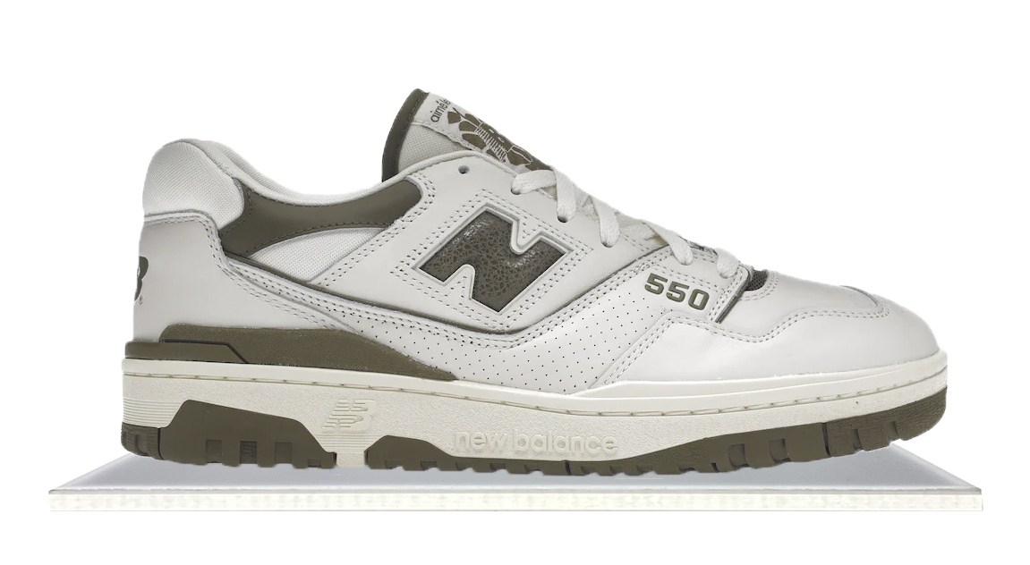 Aime Leon Dore is back with another take on the New Balance 550. This time in an "olive" colorway with a white leather base and olive brown detailing throughout the shoe.
