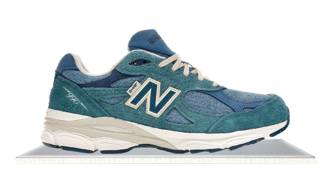 The New Balance 990v3 Levi's Denim is rich in its texture, combining blue suede and denim for next-level plushness and looks. A Levi's logo tab sticking off the side of a New Balance logo on the upper logo nods to the back-pocket branding of most Levi's jeans.