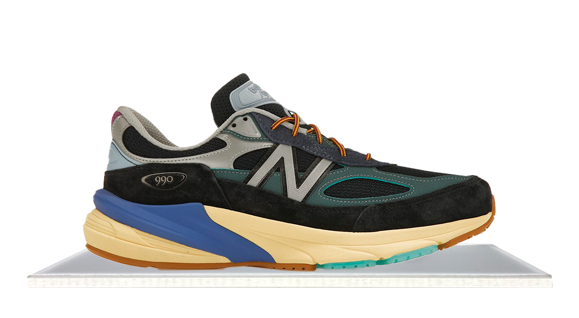 The Action Bronson x New Balance 990v6 Made in USA ‘Lapis Lazuli’ offers the artist's creative spin on the lifestyle runner. Navy mesh pairs with microperforated teal suede overlays, accented by vibrant lavender and powder blue details. Baklava branding adorns the tongue patch and sockliner, while ENCAP cushioning ensures comfort with a pop of ultramarine at the heel.