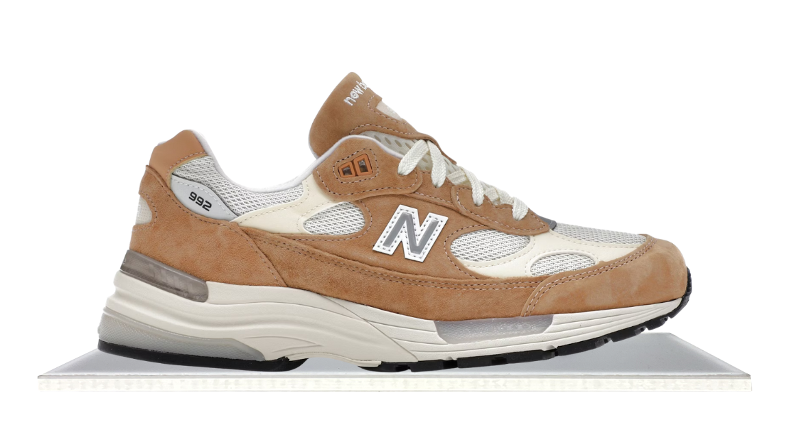 The New Balance 992 MiUSA Sweet Caramel pairs off-white mesh with rich caramel suede for a refined, timeless look. Reflective silver “N” logos and embroidered branding add subtle detail, while the ENCAP, C-CAP, and ABZORB cushioning deliver the comfort and durability that define this classic silhouette.