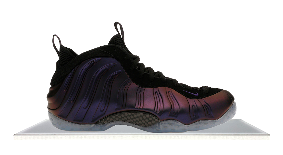 In 2024, Nike revives the iconic Nike Air Foamposite One ‘Eggplant’ colorway. Featuring a metallic purple Foamposite shell with black accents, it includes embroidered mini-Swoosh and Penny Hardaway’s logo. Complete with Zoom Air cushioning and a carbon fiber spring plate for top-tier performance.