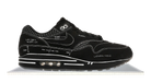 The Air Max 1 Tinker Sketch to Shelf Black boasts a predominantly black upper made from premium materials like leather and suede. Hand-drawn lines and white outlines on the Nike Swoosh create a sketch-like appearance. The classic Air Max cushioned midsole adds comfort and style to this iconic shoe.
