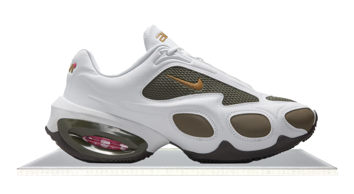 Veneda Carter reimagines the Air Max with a bold mix of utility and high fashion flair. Rainwear-inspired mesh meets matte white overlays and a sculpted beige mini-Swoosh. The Hyper Pink Air unit pops against earthy tones, giving the silhouette an avant edge. A statement piece from street to studio—functional, fearless, and unmistakably Veneda.