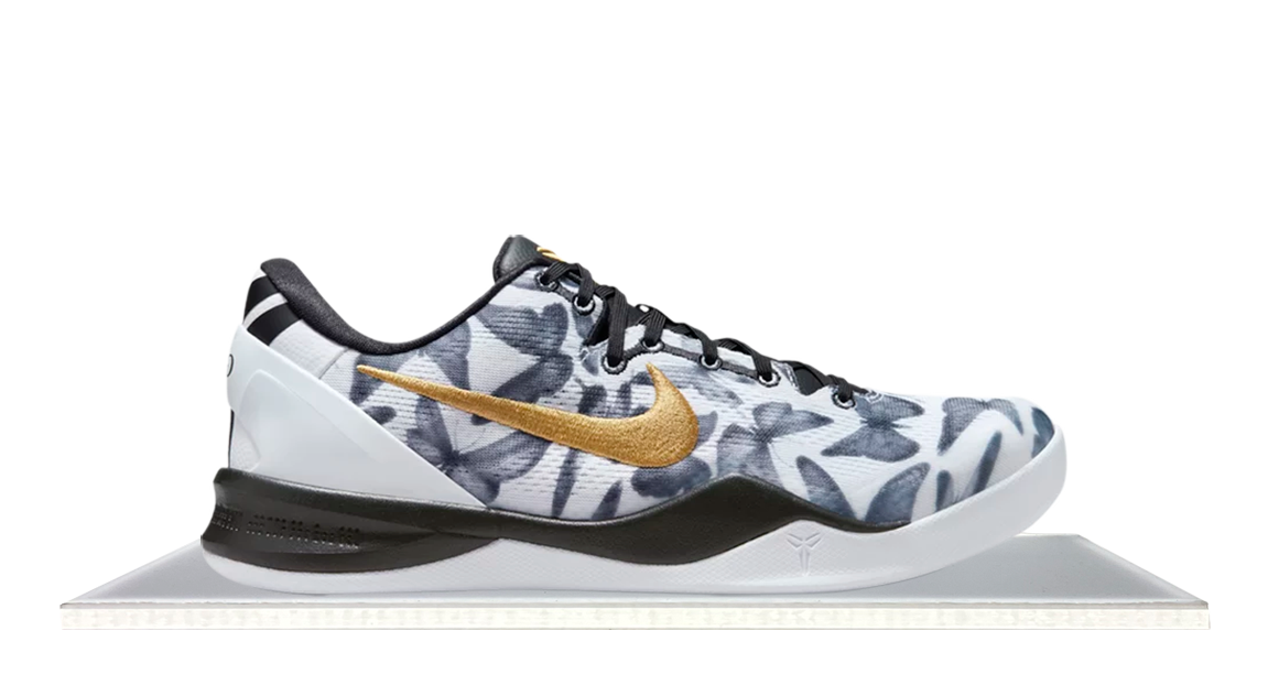The Nike Kobe 8 Protro ‘Mambacita’ honors Gigi Bryant with a butterfly-printed upper in off-white Engineered Mesh. Gold Swoosh detailing and 'Gigi' embroidery on the heels celebrate her legacy. Equipped with React foam midsole, carbon fiber shank plate, and herringbone-traction rubber outsole for top performance.