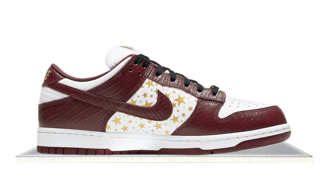 Additional details includes stars on the side of each sneaker and a gold Supreme tag on the laces.