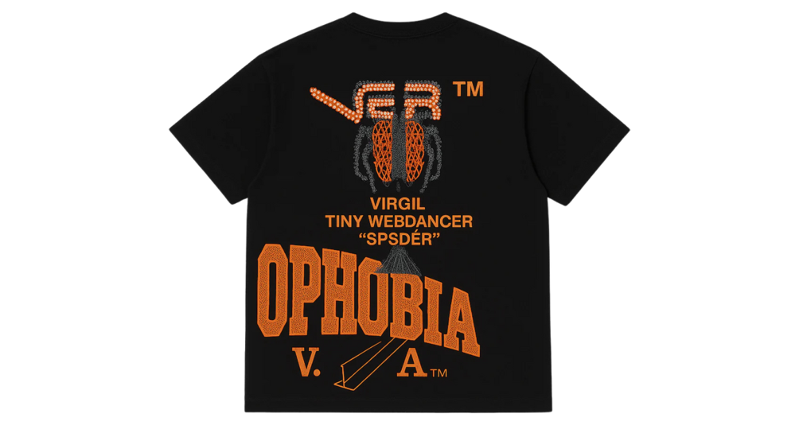 The Virgil Abloh Archive Sp5der Tee Black commemorates the first major European exhibition dedicated to Virgil Abloh. Featuring a bold front graphic and Grand Palais detailing on the back, this collectible tee pays homage to the visionary designer’s lasting cultural impact.